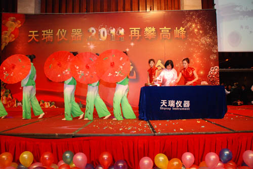 欢快的开场舞《好运来》为整场晚会拉开了序幕。甜美的歌声、喜庆的舞蹈,瞬间将观众带入欢快祥和的氛围。紧接着,刘博士为元宵晚会致演讲词。刘博士表示,2011对于天瑞人来说是意义非凡的一年,公司迎来了上市,面临了更大的机遇和挑战;2011年是天瑞仪器奋斗的新起点。同时,祝全体员工在2011年再攀高峰、幸福安康。