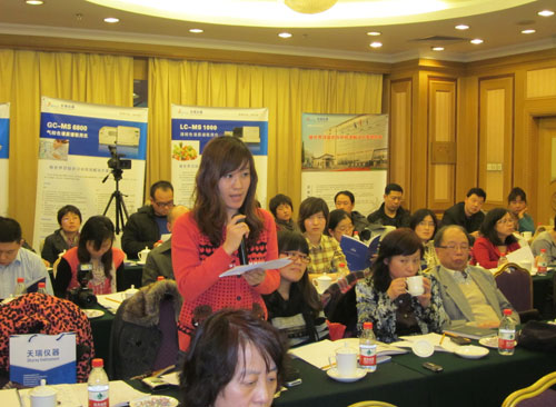 接着,在现场媒体的见证下,天瑞仪器质谱项目负责人周立博士揭开了三款质谱仪新品的神秘面纱。长达一个半时的汇报中,周立博士从仪器原理、应用领域、产品技术指标、技术创新点、实际检测案例、研发团队建设等角度详细解读,展示了GC-MS 6800、LC-MS 1000、ICP-MS 2000三款仪器。
