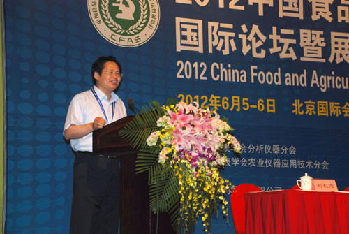 2012年6月5日至6日,由中国仪器仪表学会分析仪器分会、中国仪器仪表学会农业仪器应用技术分会主办的“2012中国食品与农产品质量安全检测技术应用国际论坛及展览会(CFAS 2012)”在北京国际会议中心召开。本届论坛以“为构建中国食品安全保障体系,进一步推动食品、农产品检测新技术的广泛应用,完善食品与农产品质检体系建设”为主题,食品、农产品监管部门多名领导及食品质检领域学者出席。天瑞仪器董事长刘召贵博士应邀参加论坛,并作专题报告。