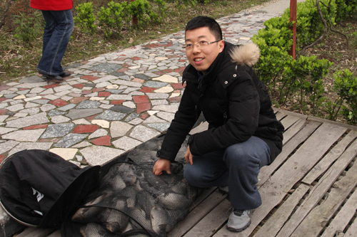 今天的比赛竞争相当激烈,几乎是2分钟内鱼就上钩一次,疯狂连杆中!各位选手都取得了骄人的成绩,每位选手都钓了几十条鱼。据最后数据统计得知此次比赛共钓了700多斤鱼,大家都很难相信。其中天瑞仪器员工黎桥、孙根平分别获得此次比赛的一等奖和二等奖,第三名由苏州商会会员获得,刘博士分别对获奖者进行颁奖并合影留念。