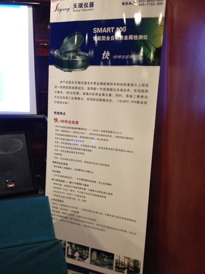 2013年8月7日,由天瑞仪器组织的贵金属新技术宣讲会在深圳艺嘉国际大酒店举行,公司董事长刘召贵博士为来自全国贵金属质检机构和行业领军企业的近70名代表讲解贵金属检测新技术。