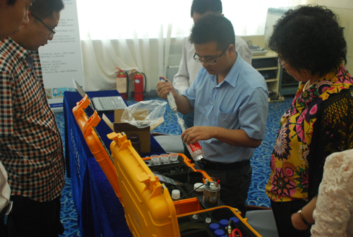 天瑞仪器工程师向来宾展示公司自主研发的便携式食品重金属快速分析仪HM-7000P,引起了现场的热切关注,纷纷询问交流。