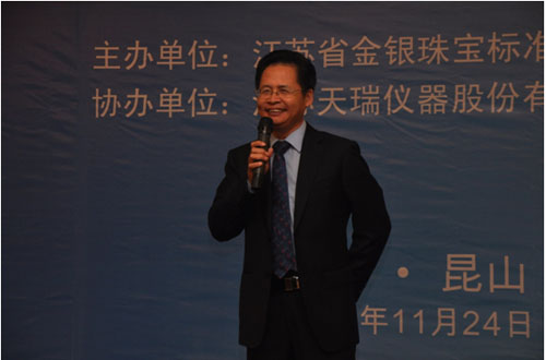 国家金银制品质量监督检验中心(南京)主任周骏贵为大会致词
