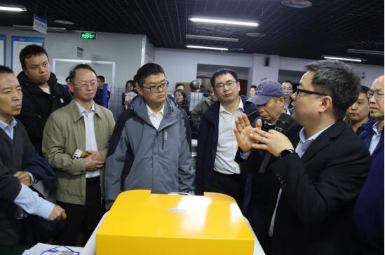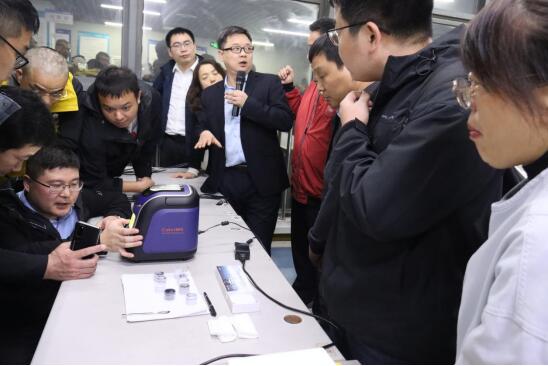 随后,考察团一行移步至公司三楼Cube100S产品生产线。针对炭黑行业的关键检测需求,天瑞技术专家在现场对Cube100S能量色散X荧光光谱仪、EDX3300SPLUS 侧照式单波长X荧光光谱仪两款仪器进行了专场讲解与实机演示,仪器表现出的高精度与高稳定性,给专家领导们留下了深刻印象。他们不时驻足,就仪器的检测原理、技术参数与天瑞工程师进行深入交流。